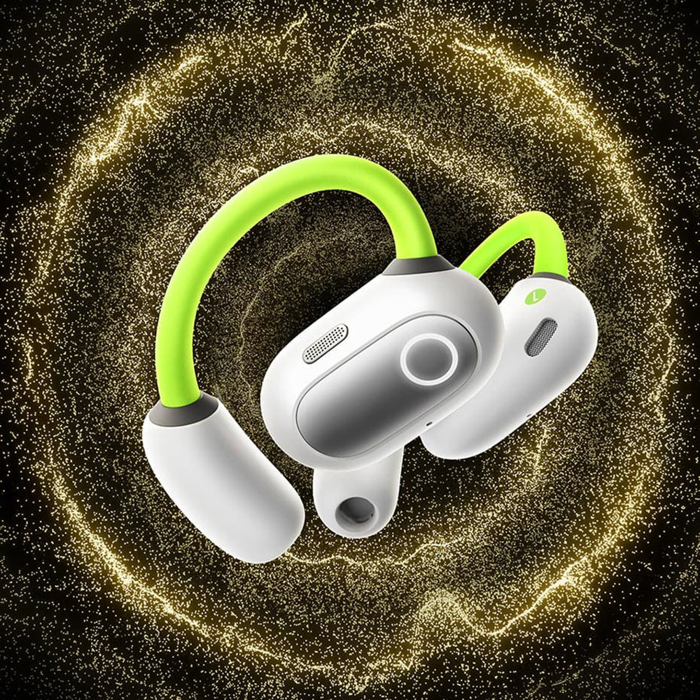 • The open-ear headphones are resistant to water droplets, so you can wear them worry-free on a cloudy autumn day or at the pool in the summer.