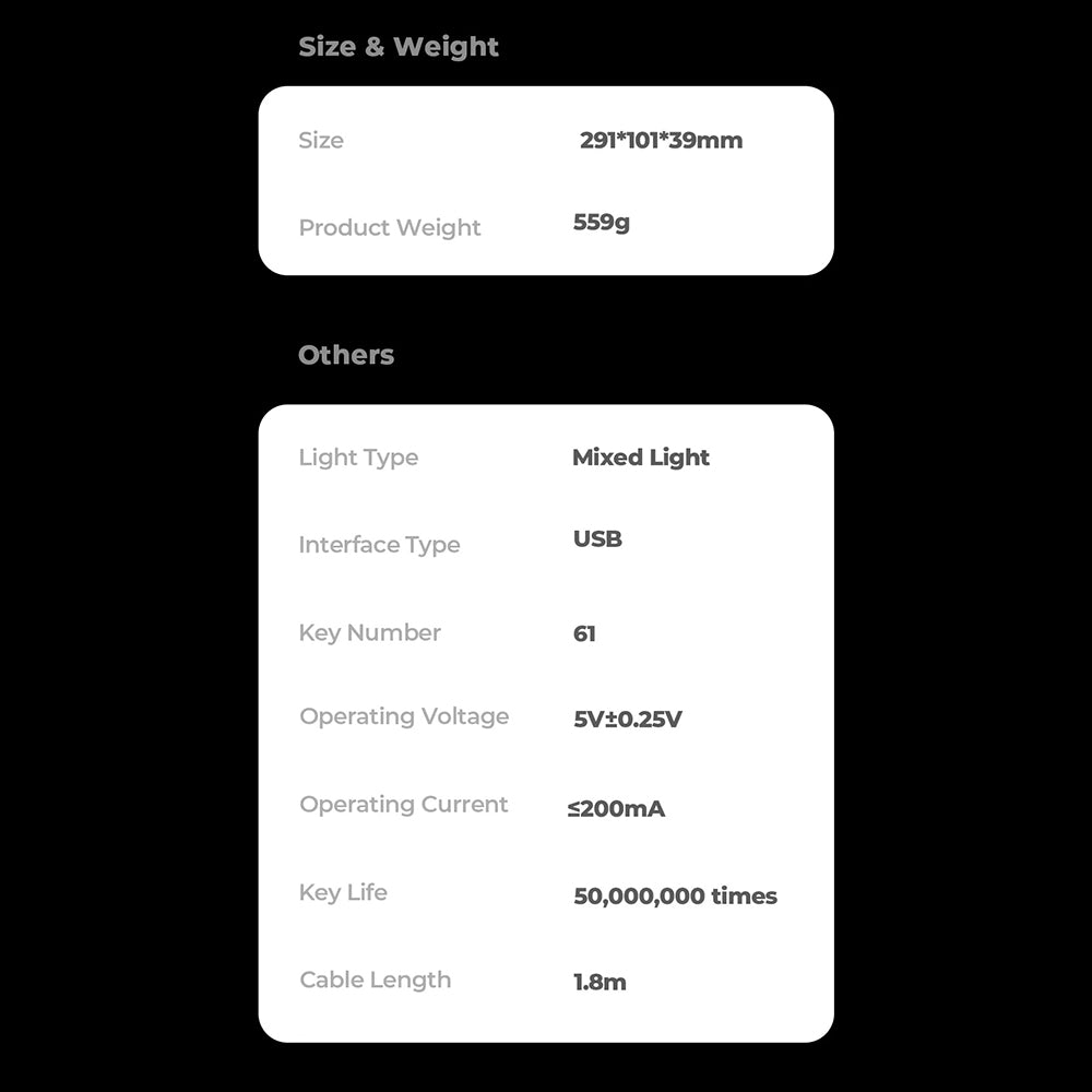 This keyboard combines a modern and compact design with spectacular colorful lights, saving space and adding dynamism to every use.