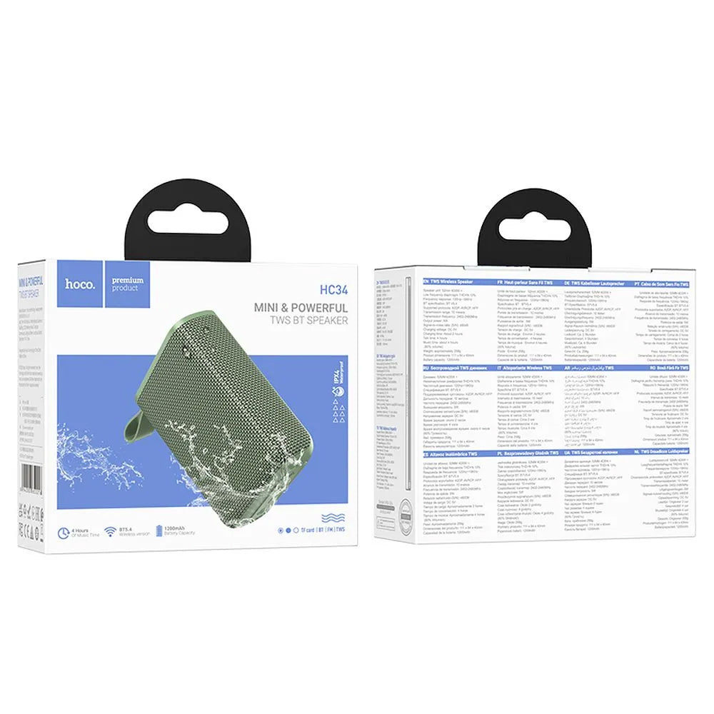 Enjoy music anywhere with HOCO HC34, the portable speaker that combines performance with portability. Equipped with Bluetooth 5.4 and Blue Trum AB5368E chipset,