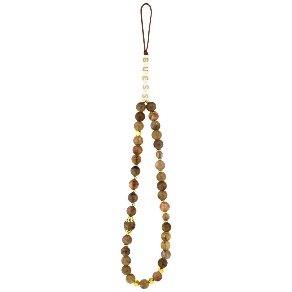 Case for Apple iPhone 17 Pro, Guess, 4G Classic Logo with Pearl Strap, Brown