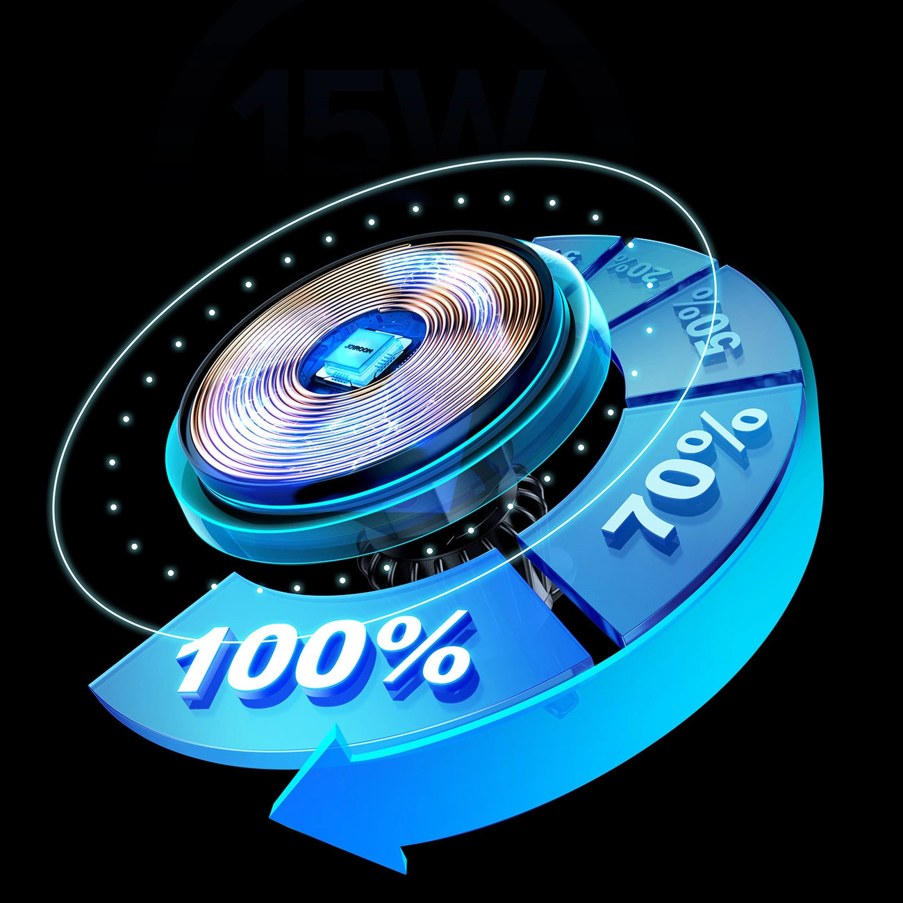 - Fast wireless charging up to 15W, compatible with MagSafe and Qi technology