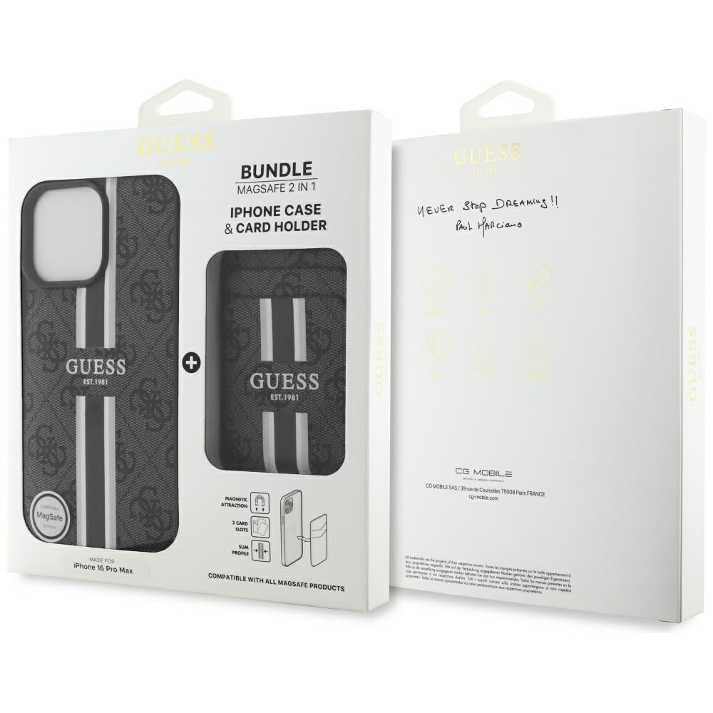 MagSafe Case for Apple iPhone 16 Pro Max, Guess, Cardslot 4G Stripes, Black