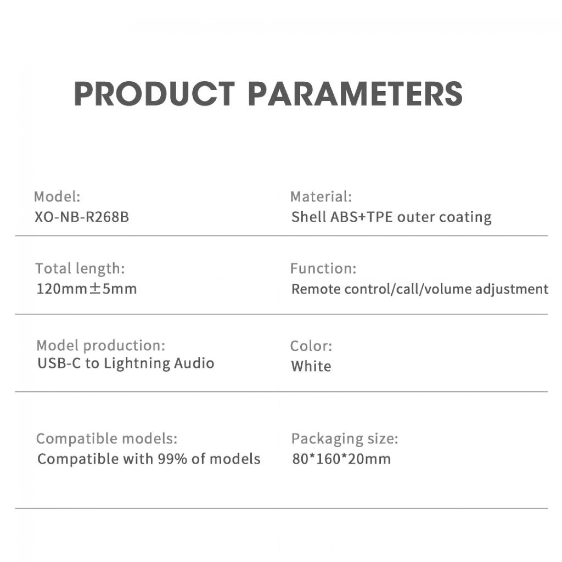 USB-C to Lightning Audio Adapter XO Design NB-R268B, 0.12m, White