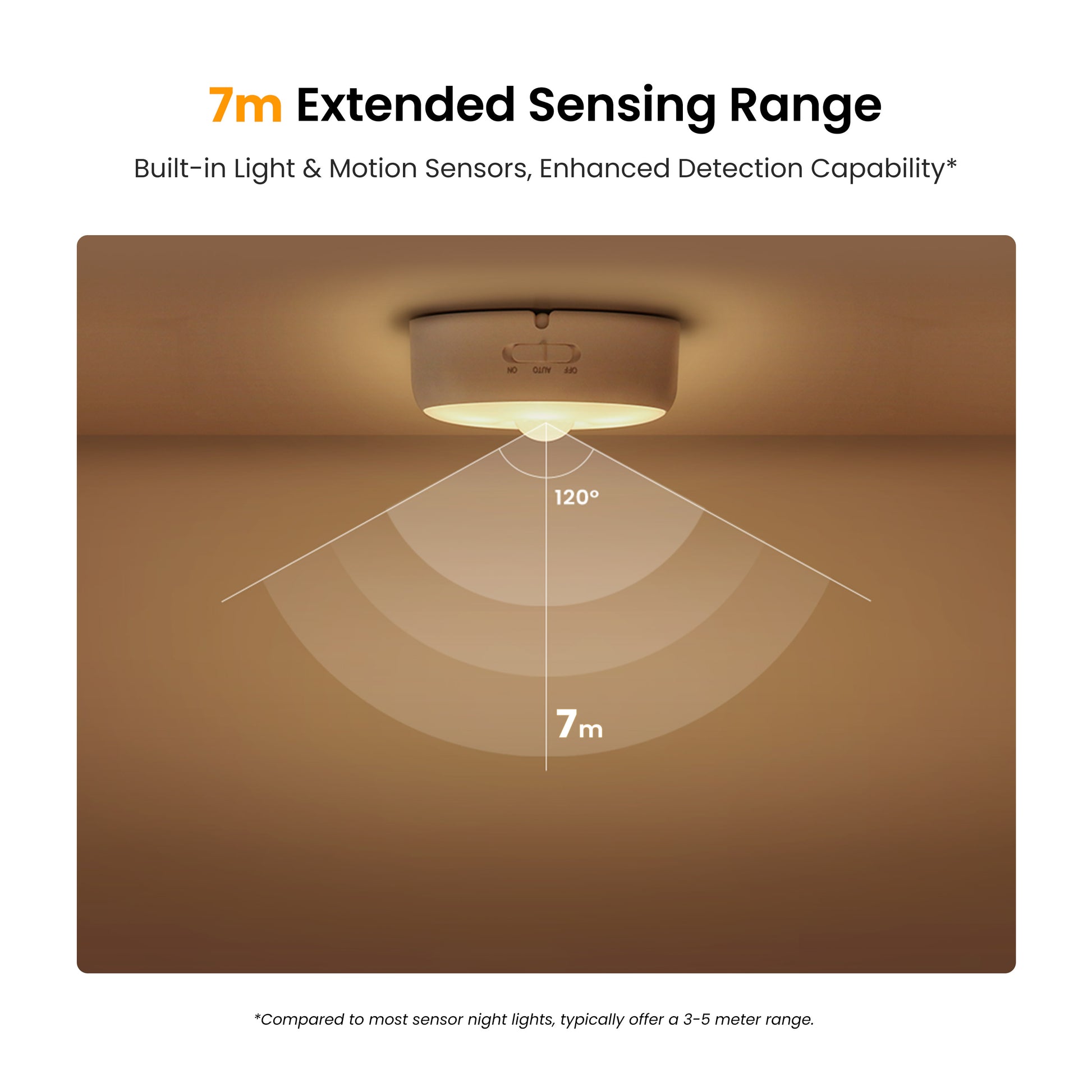 The built-in sensors detect movement within a radius of up to 7 meters, surpassing the standards of most night lights, which have a detection range of 3-5 meters. This enhanced capability ensures that the light will activate exactly when you need it.