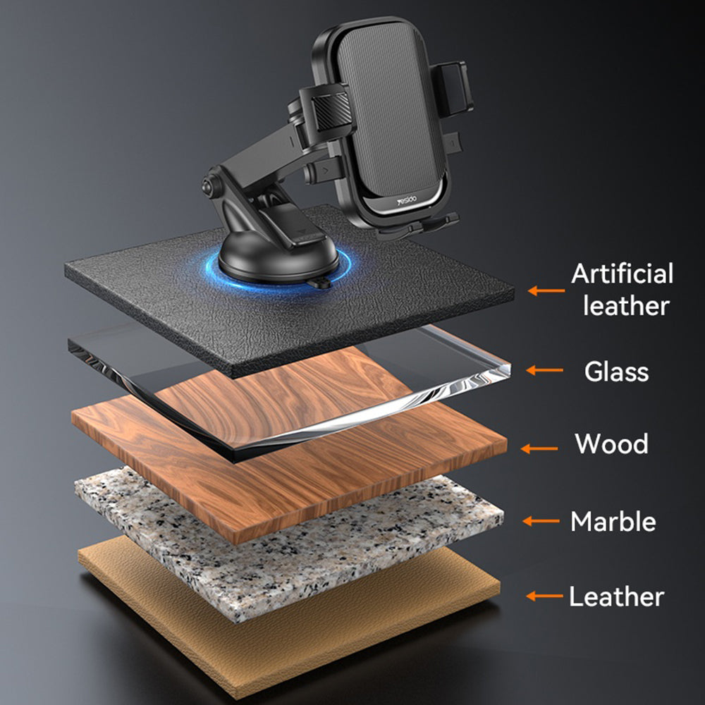 • Through the three-point gravitational grip system and the strong grip suction cup, the holder keeps the phone stable, even on the most uneven roads.