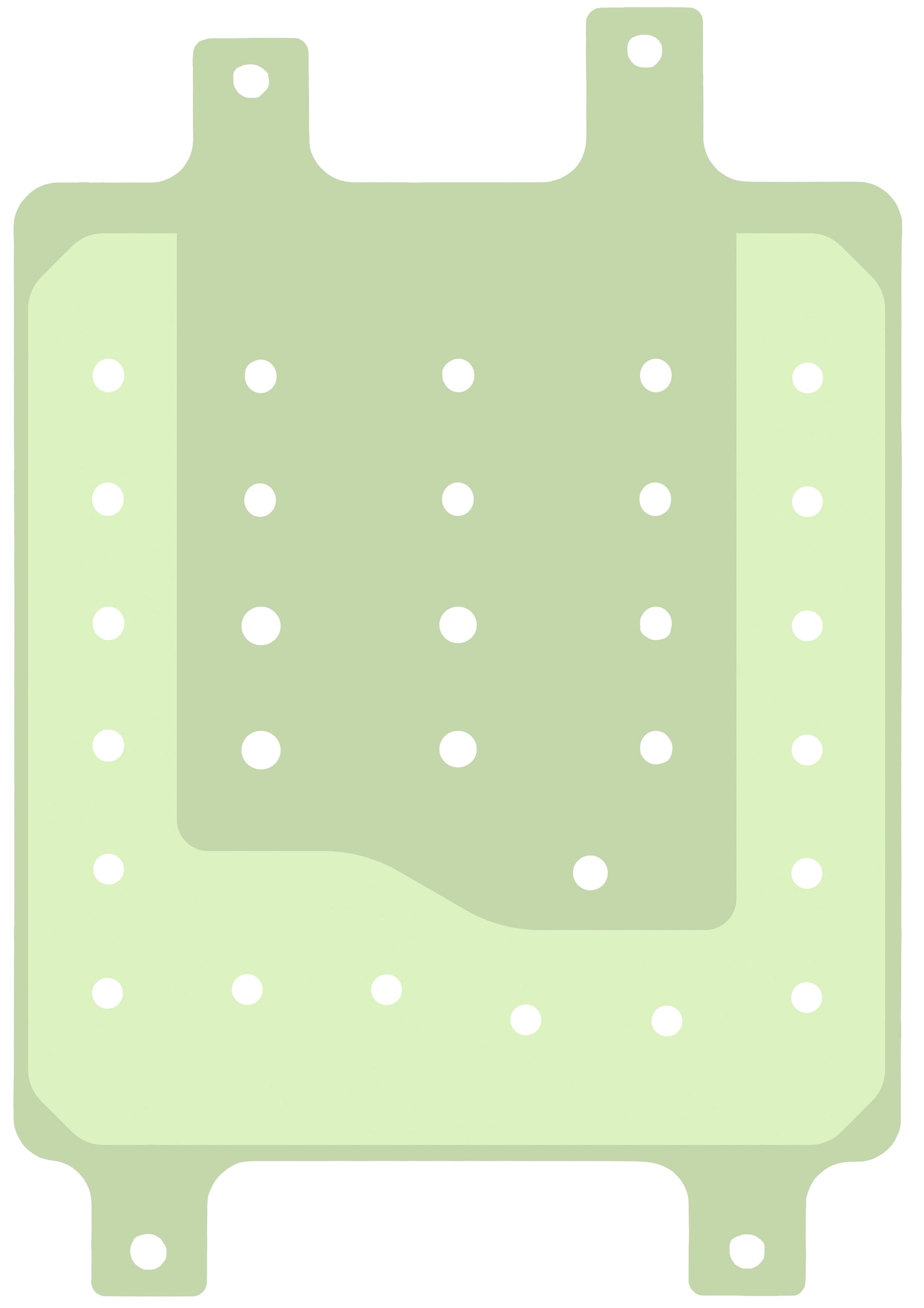 Adesivo destinado para a montagem precisa da bateria no corpo do telefone.