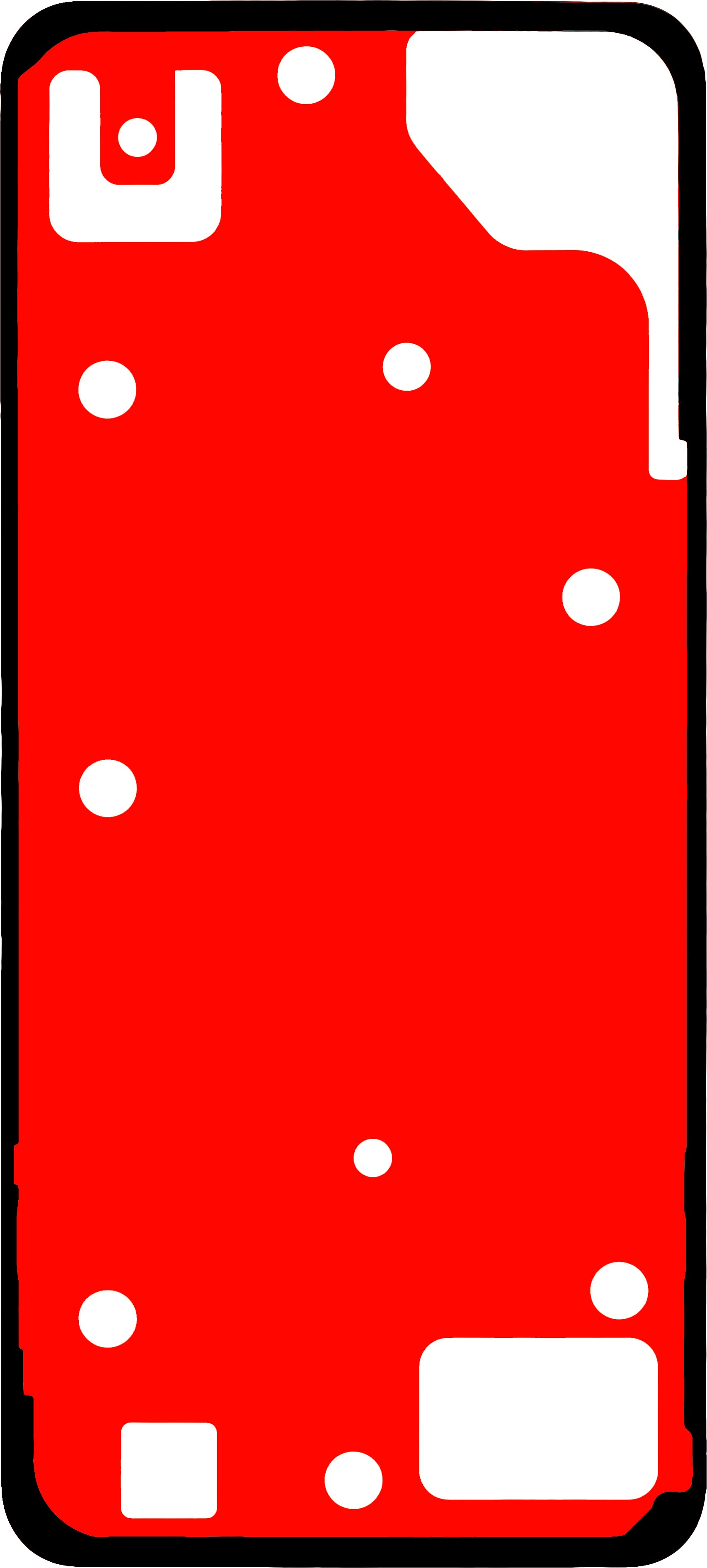 Adesivo destinado para fixação da tampa da estrutura do telefone.