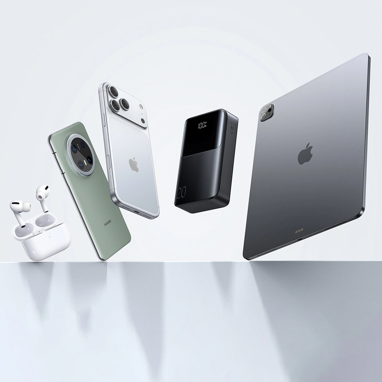 As duas portas USB-C com função de entrada e saída permitem-te carregar tanto os dispositivos quanto a bateria externa,