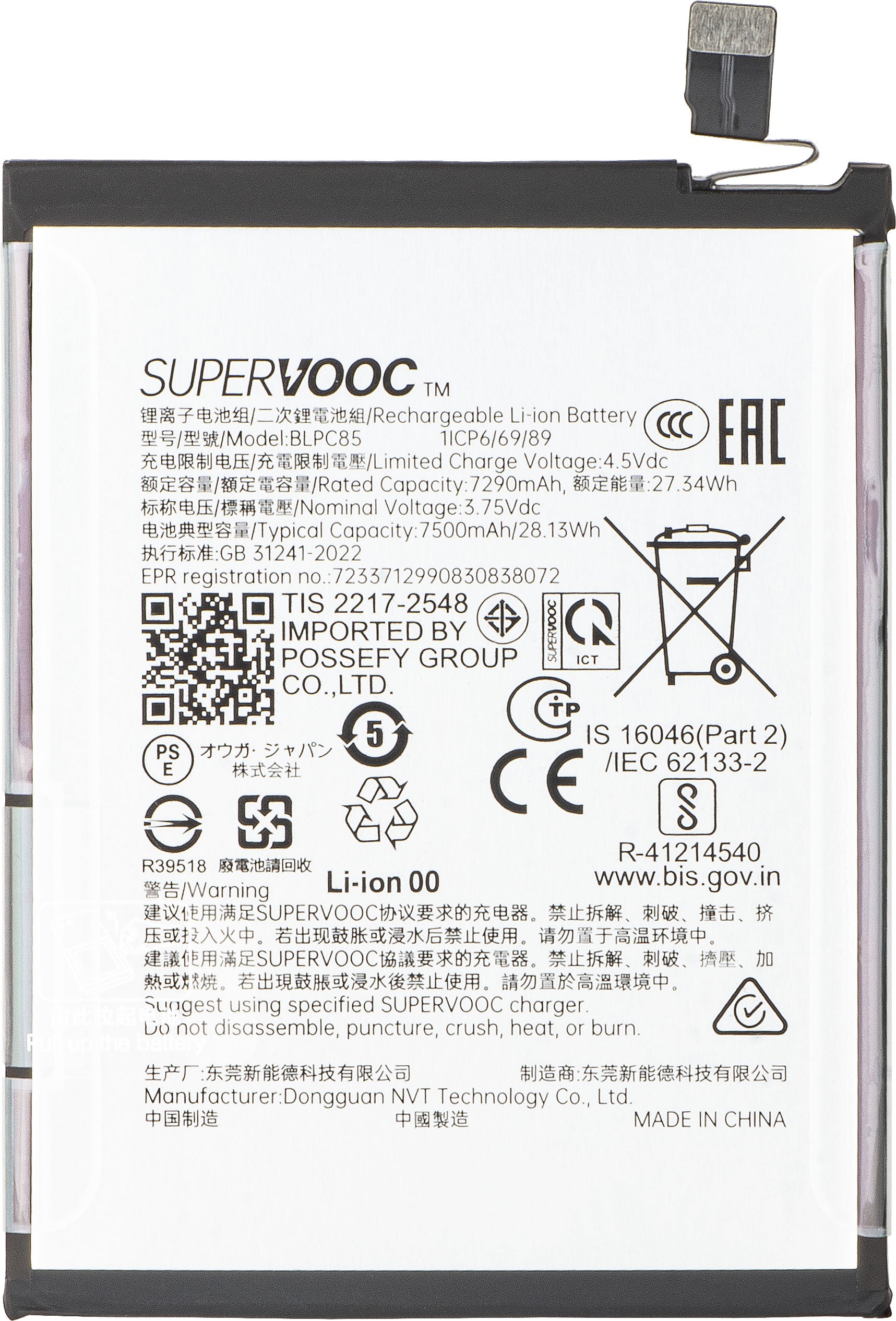 | Modelo da bateria | BLPC85 |