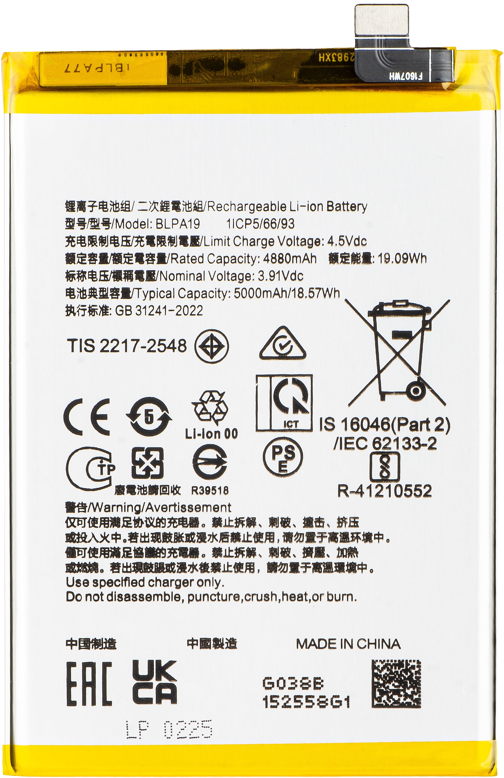 Modelo da bateria | BLPA19 |