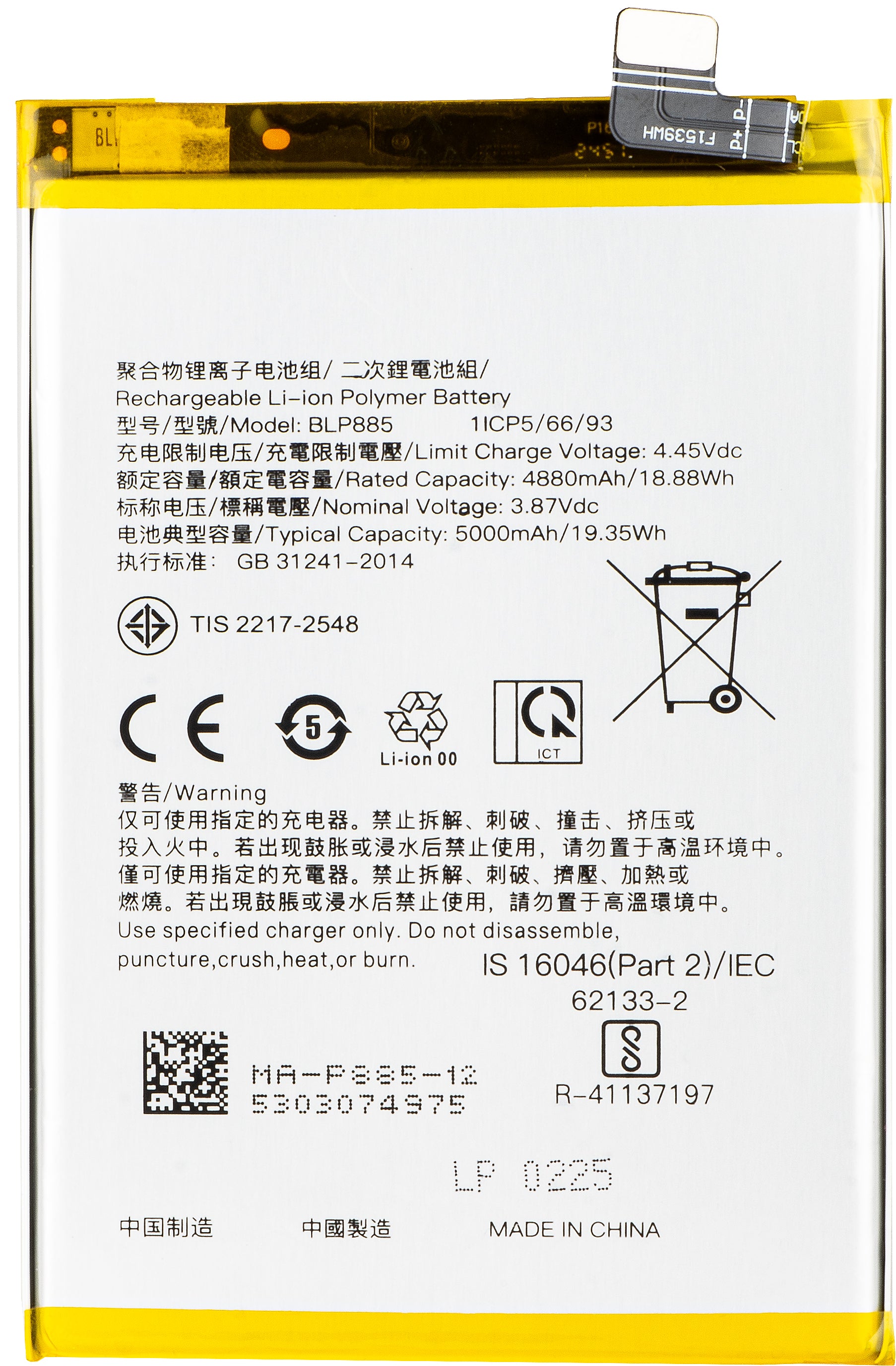 | Modelo da bateria | BLP885 |
