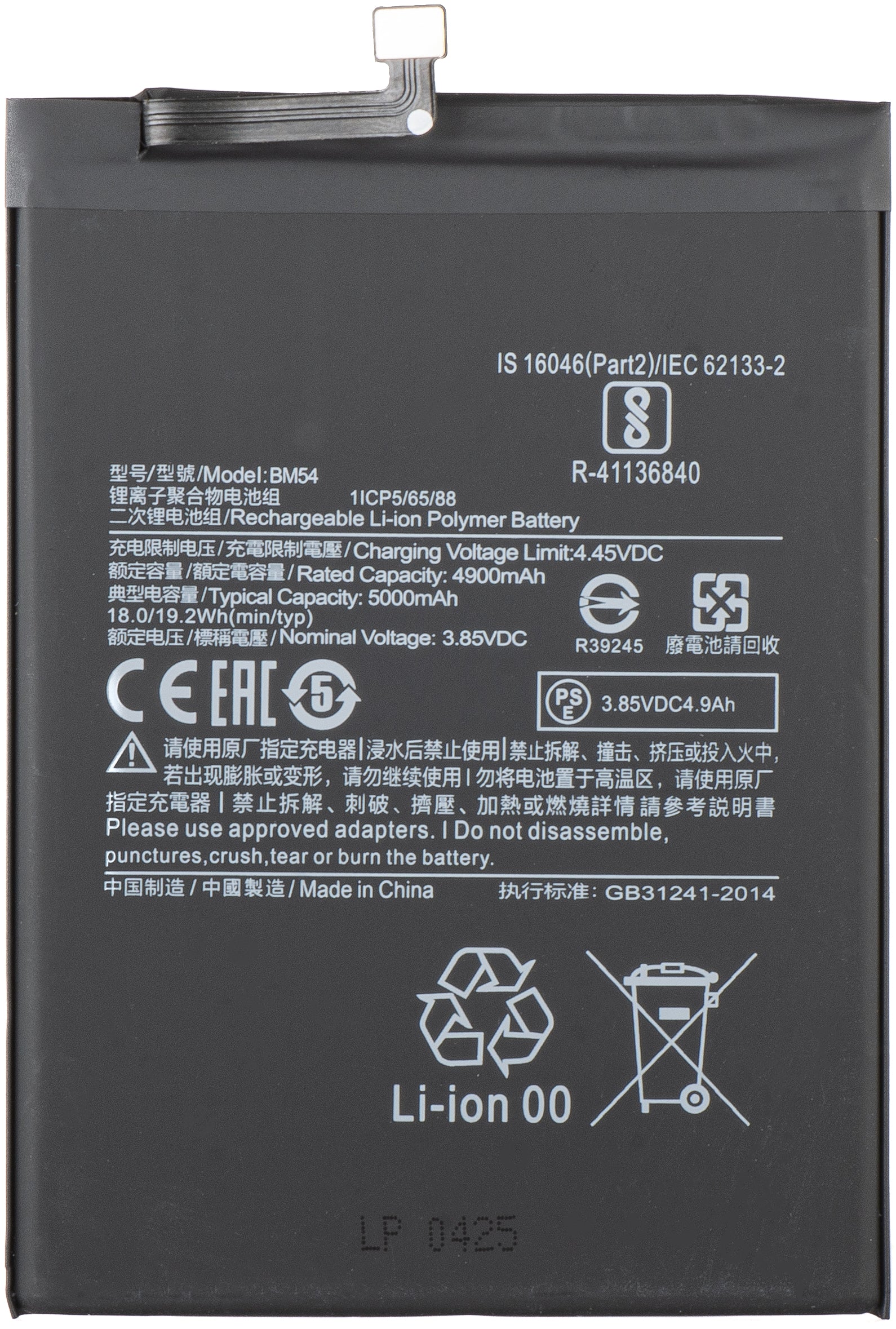 Modelo da bateria | BM54 |