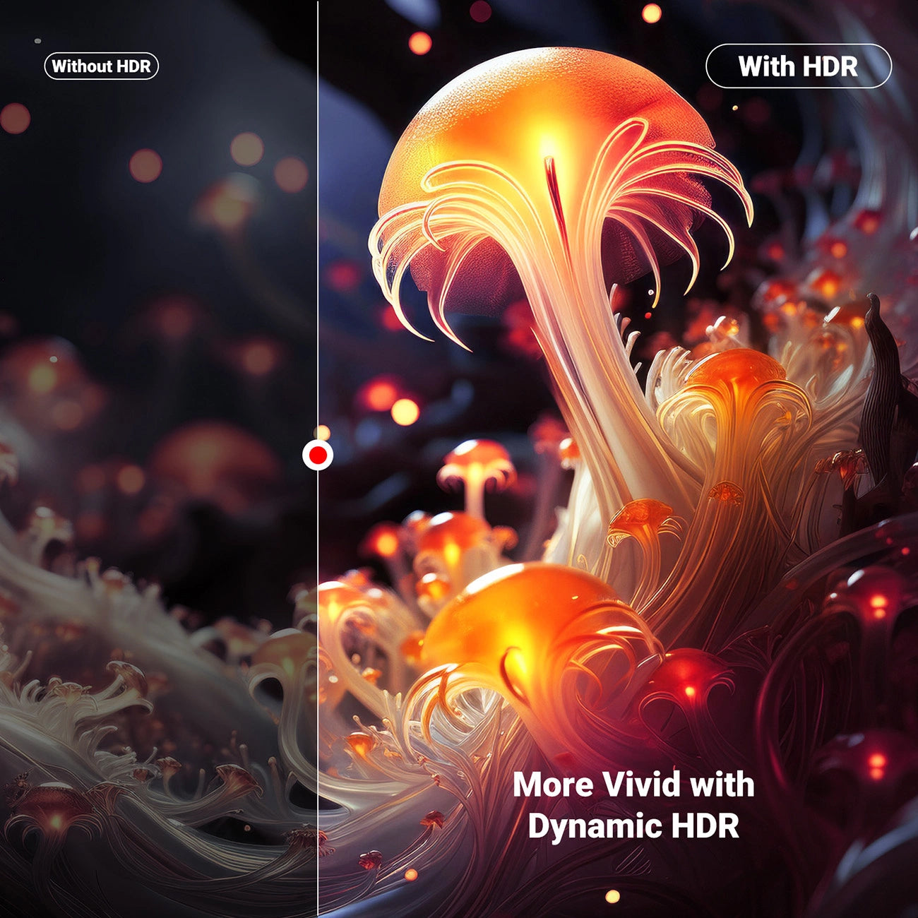 que garantem uma experiência fluida, tempo de resposta mínimo e adaptação automática do modo de exibição. Além disso, o Dynamic HDR oferece cores vivas e naturais,