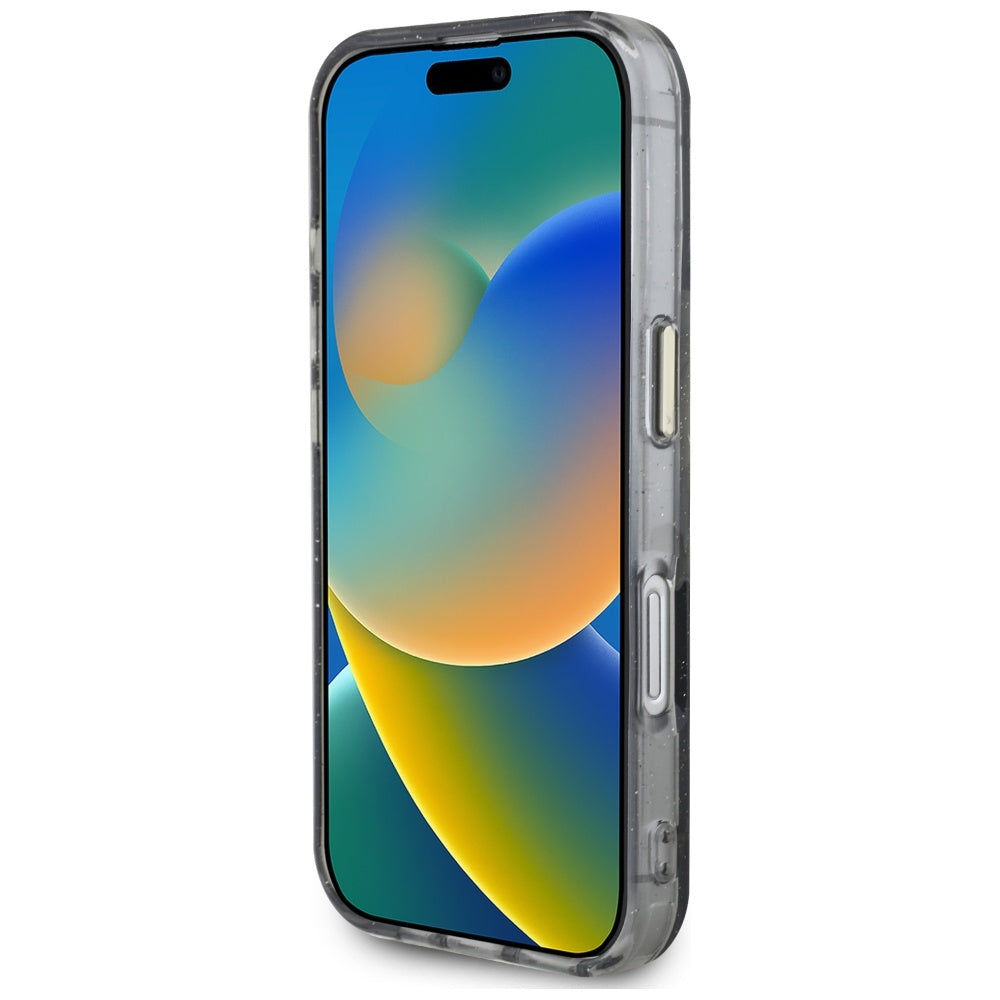 Capa MagSafe para Apple iPhone 16, Guess, IML Metal Glitter Flowers Triangle, Preta