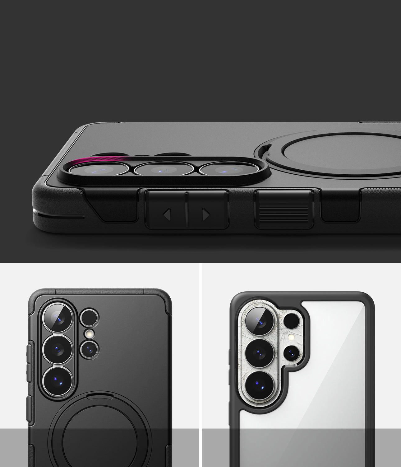As proteções junto aos botões são marcadas e garantem uma pressão confortável, e as bordas elevadas das câmeras oferecem segurança às mesmas.