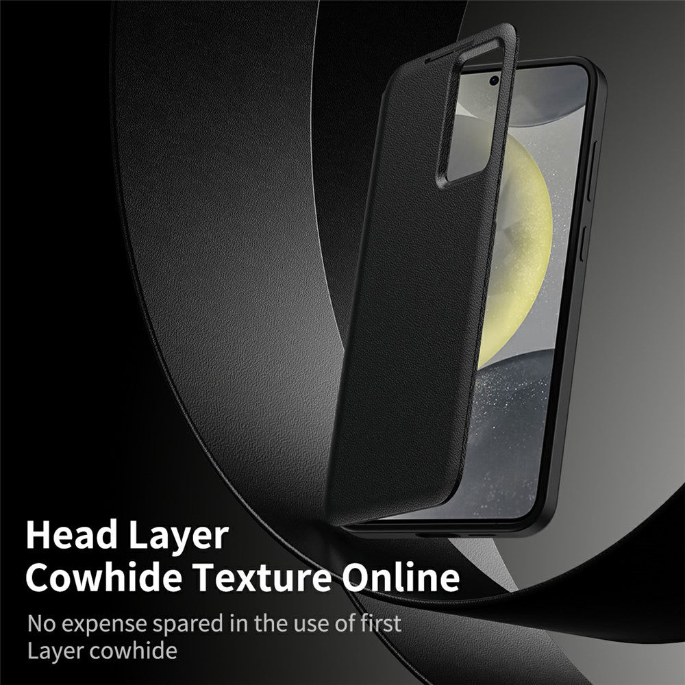 O exterior é feito de pele ecológica de qualidade, com textura fina, complementada por um acabamento especial tratado para repelir impressões digitais.