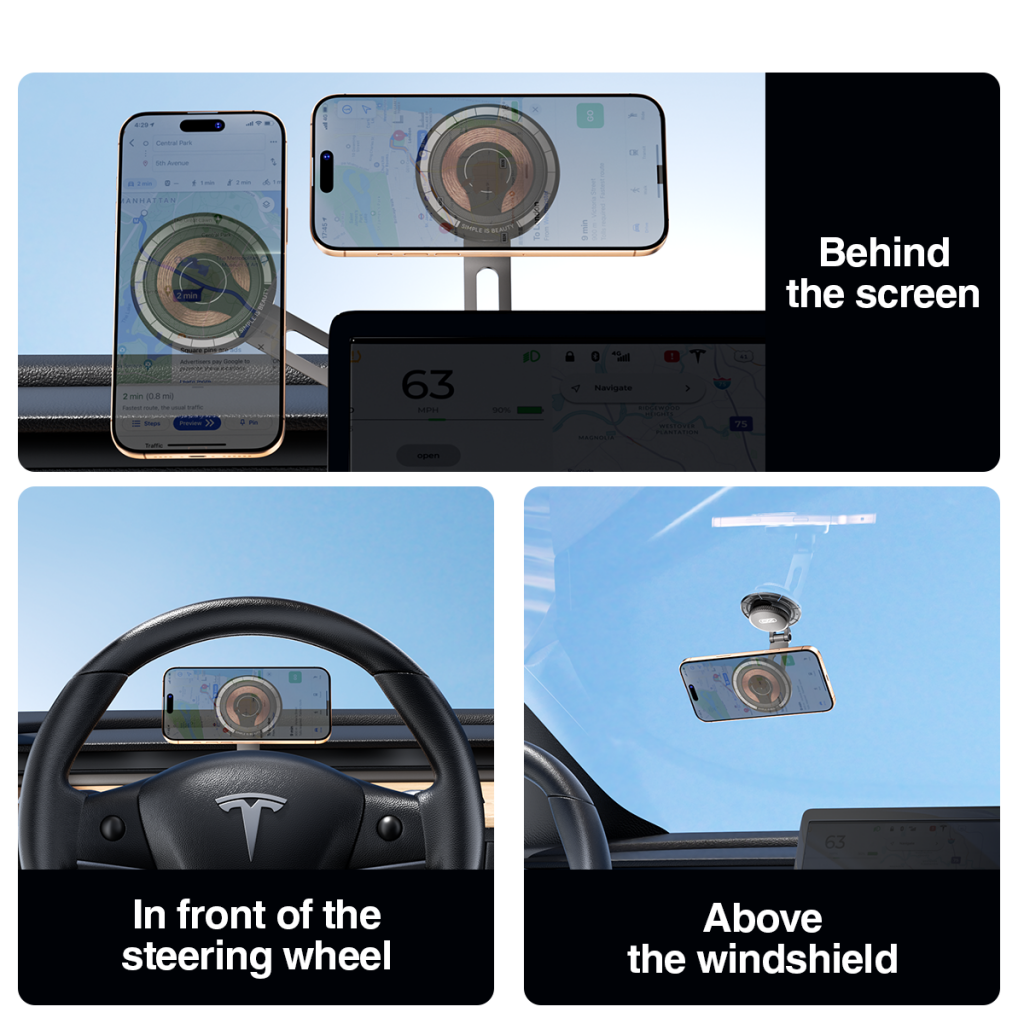 a 5W / 7.5W / 10W / 15W para um carregamento seguro e estável. A fixação magnética forte garante a fixação firme do telefone