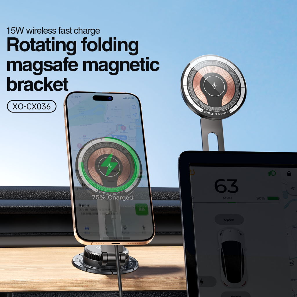 O Carregador Automóvel Wireless XO Design CX036 é um suporte magnético moderno, concebido para carregamento rápido e utilização cómoda durante a