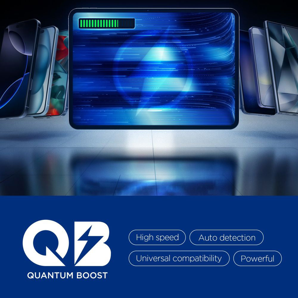 • Com a presença do "Quantum Boost", este carregador duplo reconhece o dispositivo conectado e ajusta automaticamente os parâmetros de carregamento.