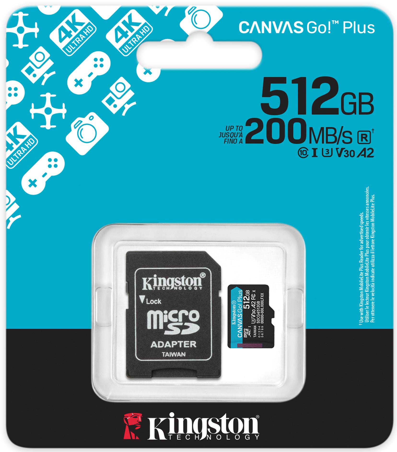 - 1 x Cartão microSDXC Kingston Canvas Go Plus 512GB