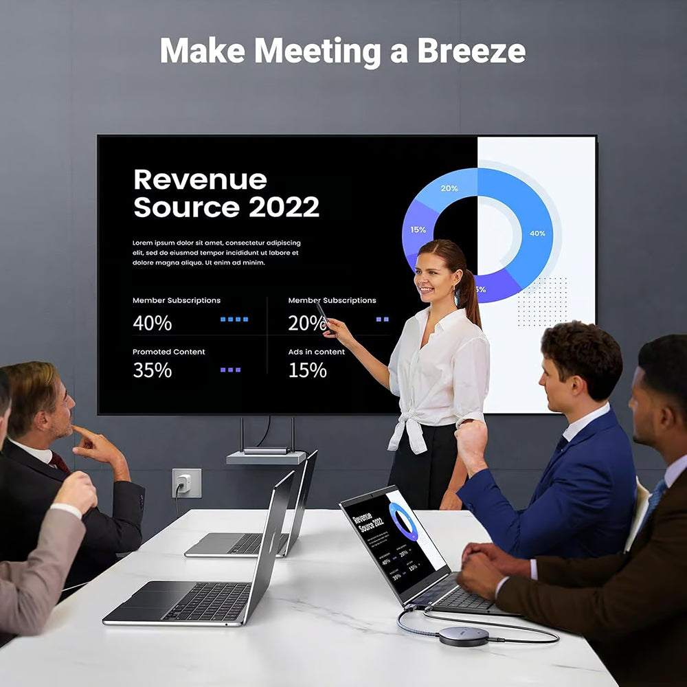 ou entretenimento em casa. O modelo UGREEN CM586 oferece suporte simultâneo para saídas HDMI e VGA, o que significa compatibilidade alargada com diversos