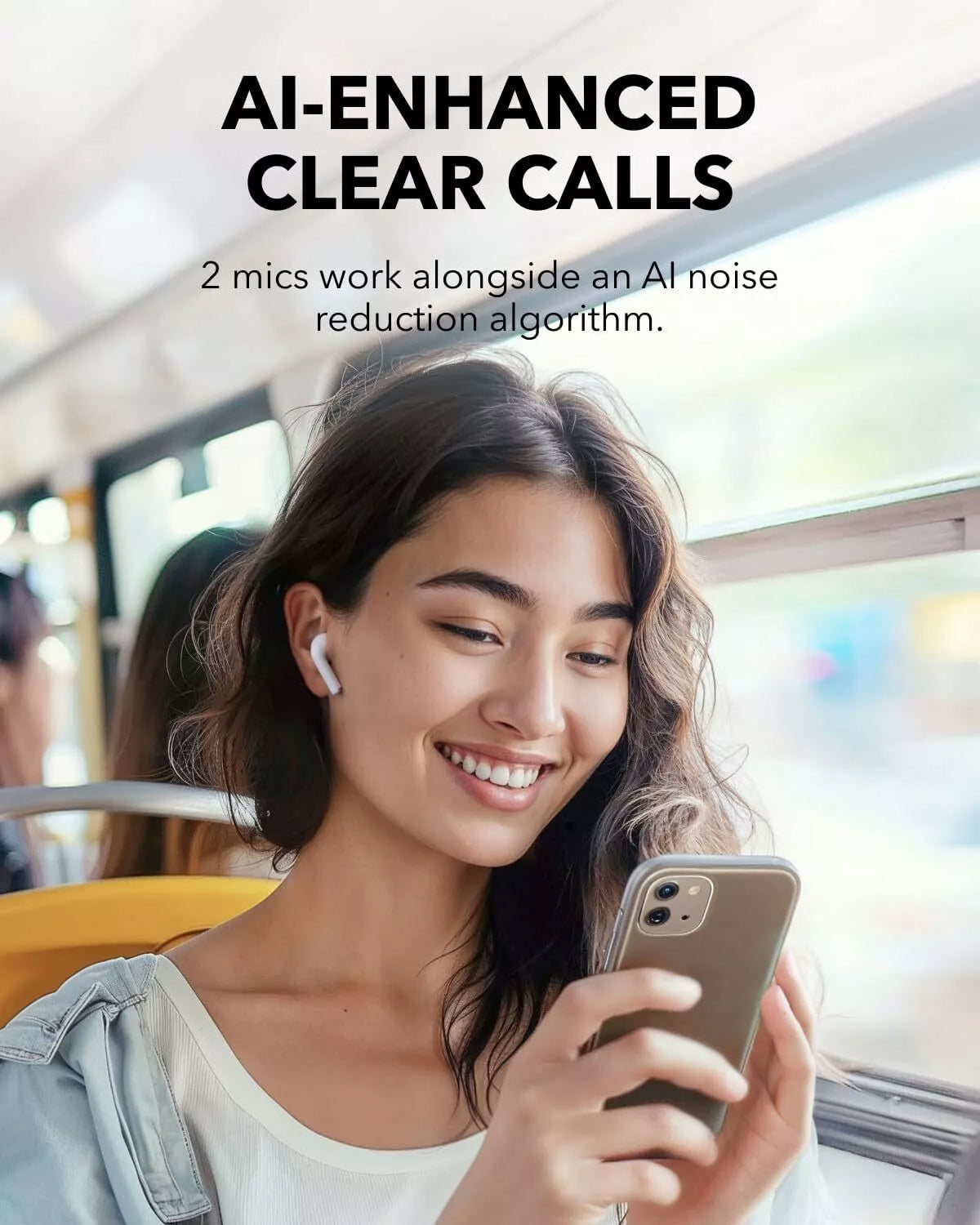 A tecnologia AI de redução de ruído e os microfones duplos ENC garantem chamadas claras, mesmo em ambientes ruidosos. Através da aplicação dedicada, os utilizadores