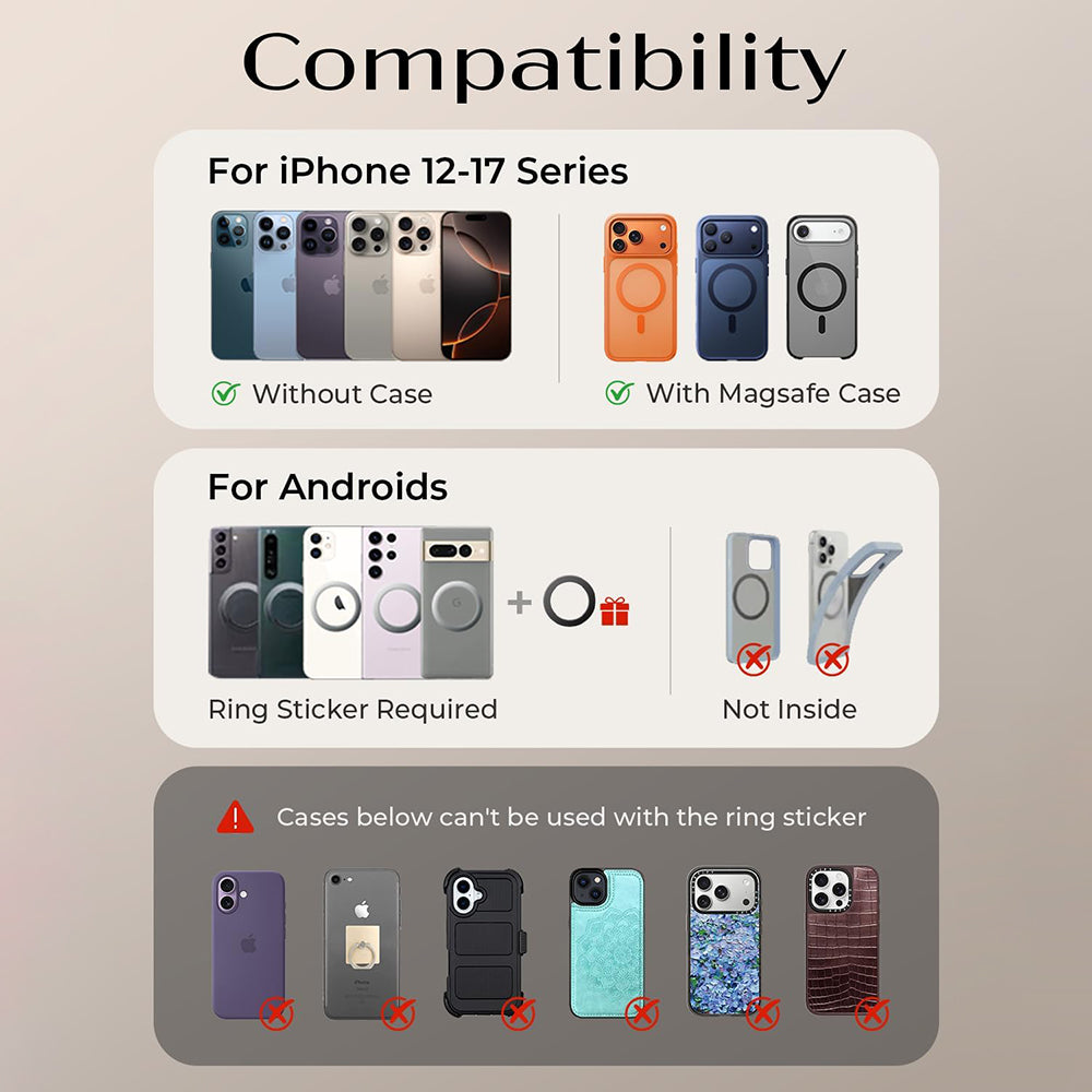 O sistema de ajuste em 4 eixos oferece uma rotação total de 1440, permitindo a inclinação, rotação e posicionamento do telefone com máxima precisão. Independentemente do lugar no carro ou do ângulo desejado, a visibilidade é ótima.